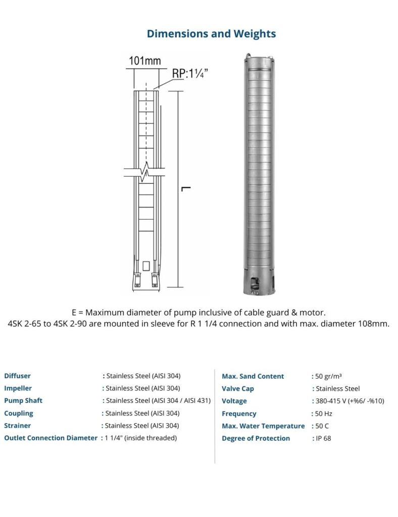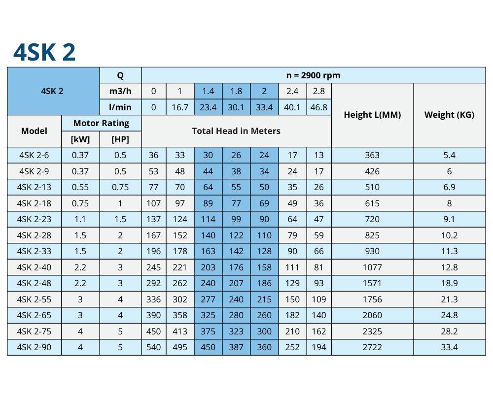 4SK 2 Series Stainless Steel Submersible Pumps (50 Hz)