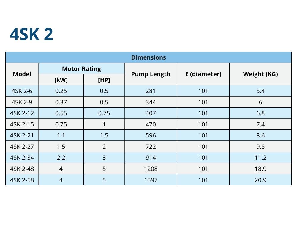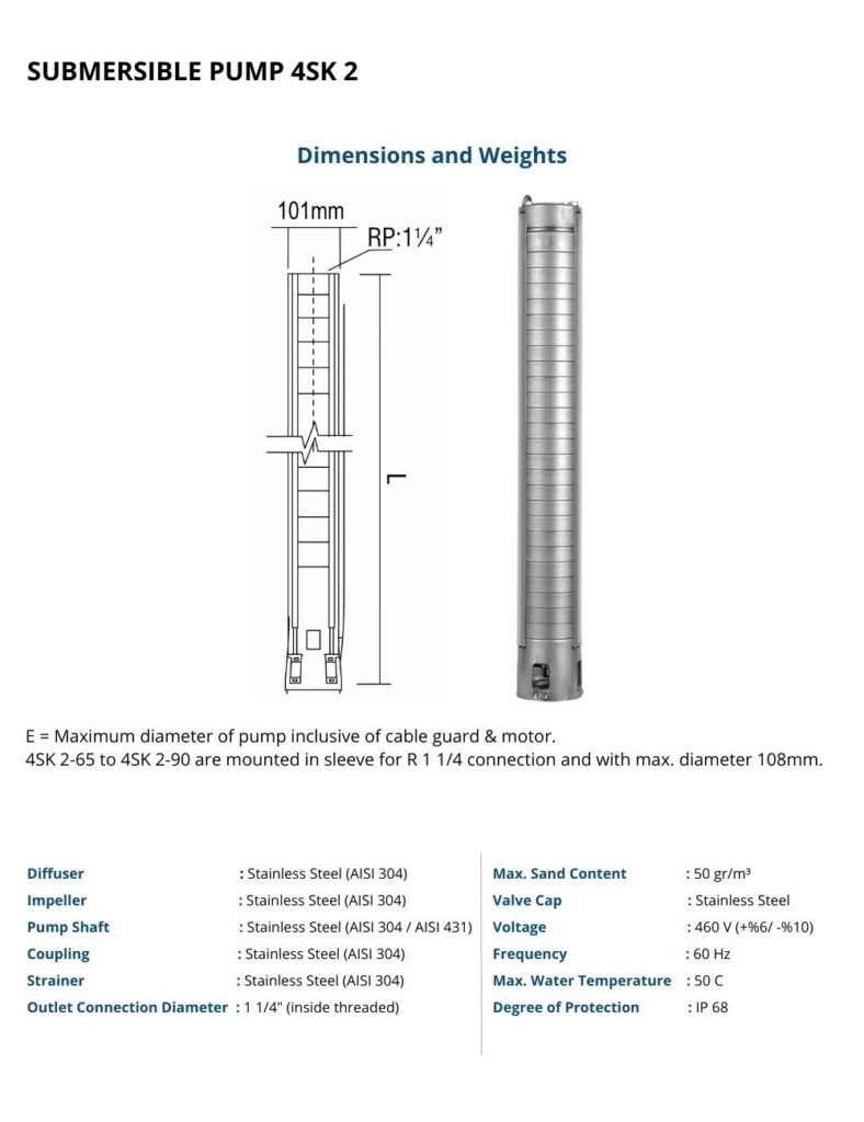 4SK2 Series Stainless Steel Submersible Pumps (60 Hz)