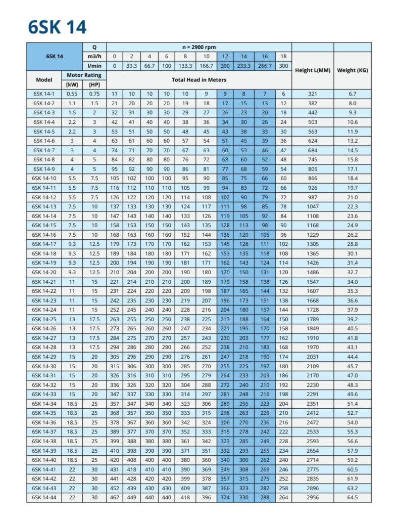6SK14 Series Stainless Steel Submersible Pumps (50 Hz)