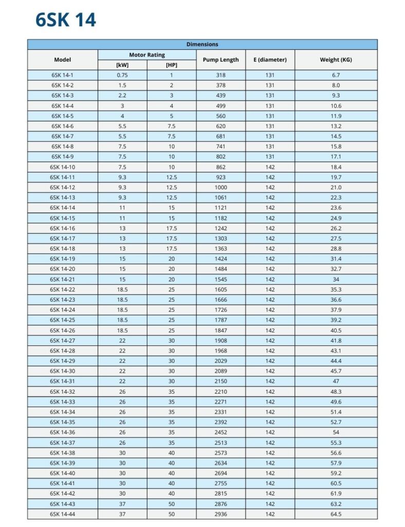 6SK14 Series Stainless Steel Submersible Pumps (60 Hz)