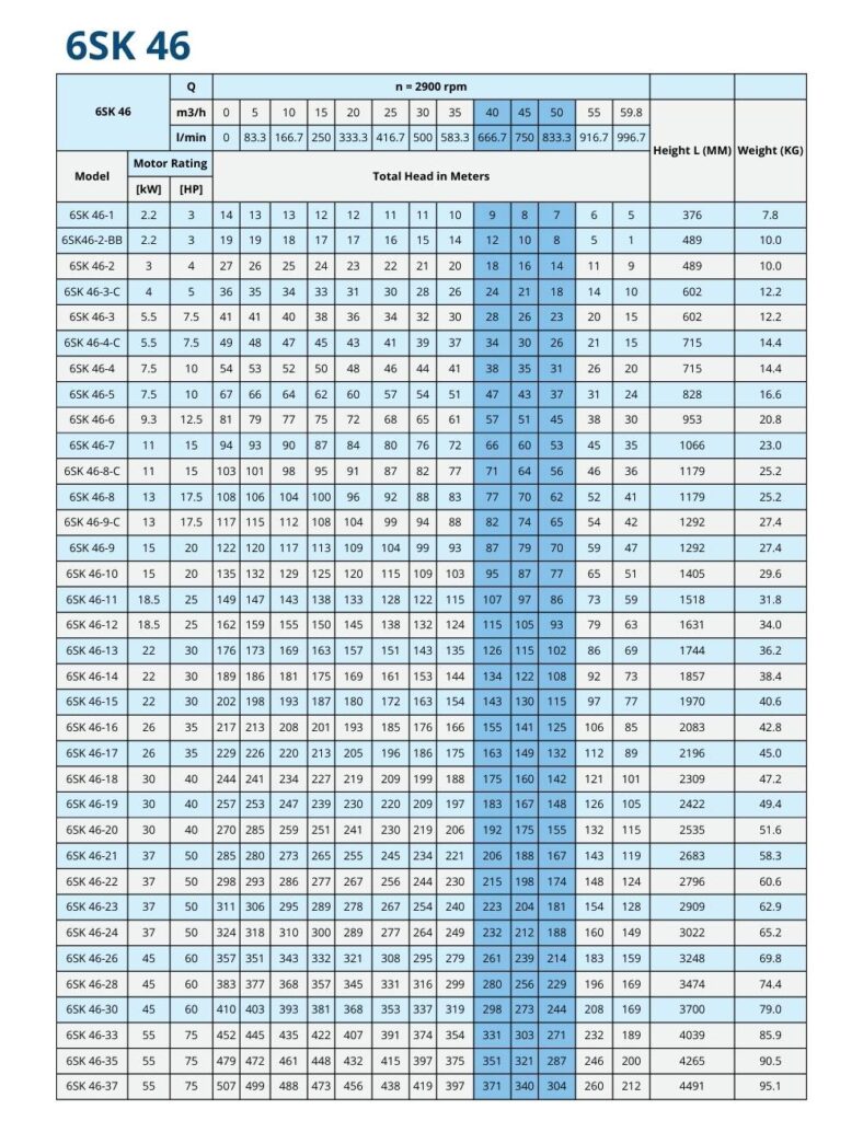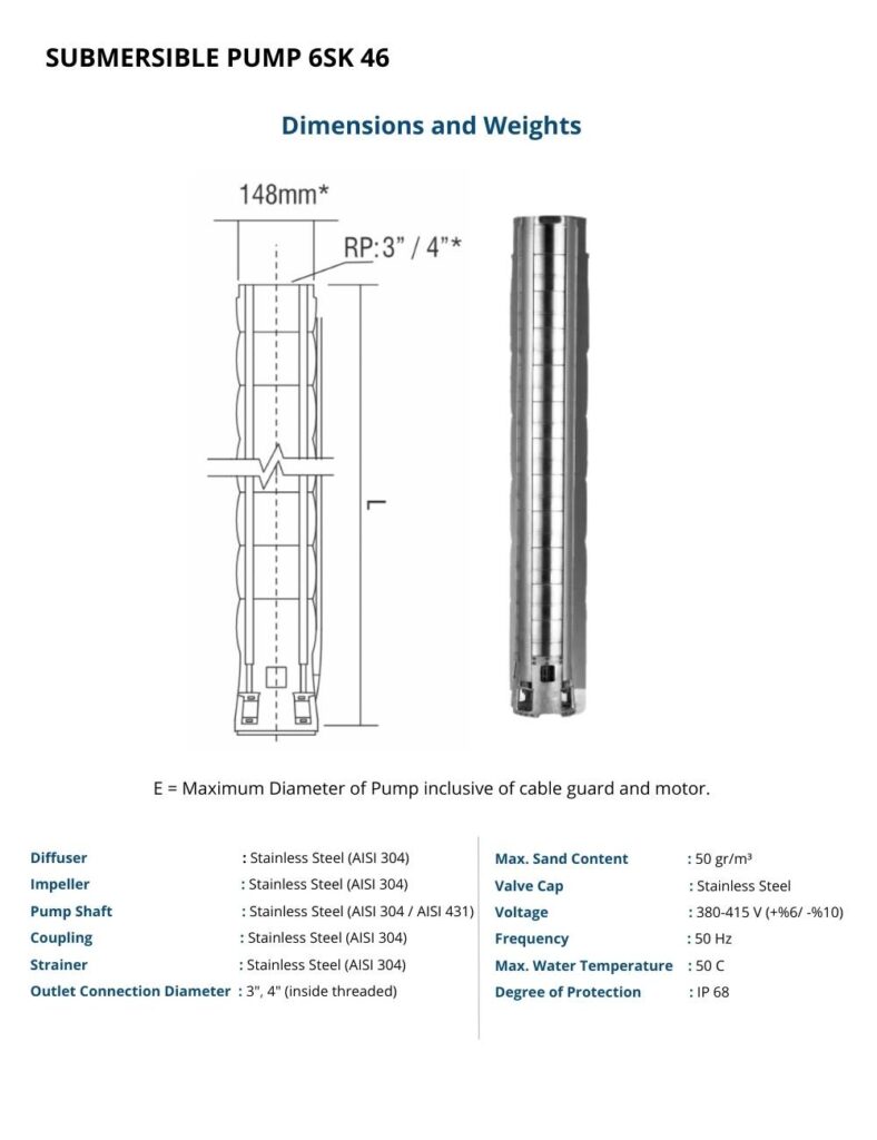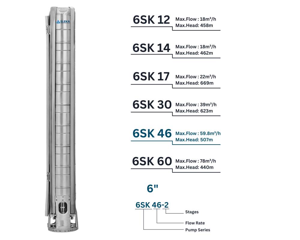 \ 6SK46 Series Stainless Steel Submersible Pumps (50 Hz) - SLEKA Industries Pvt. Ltd
