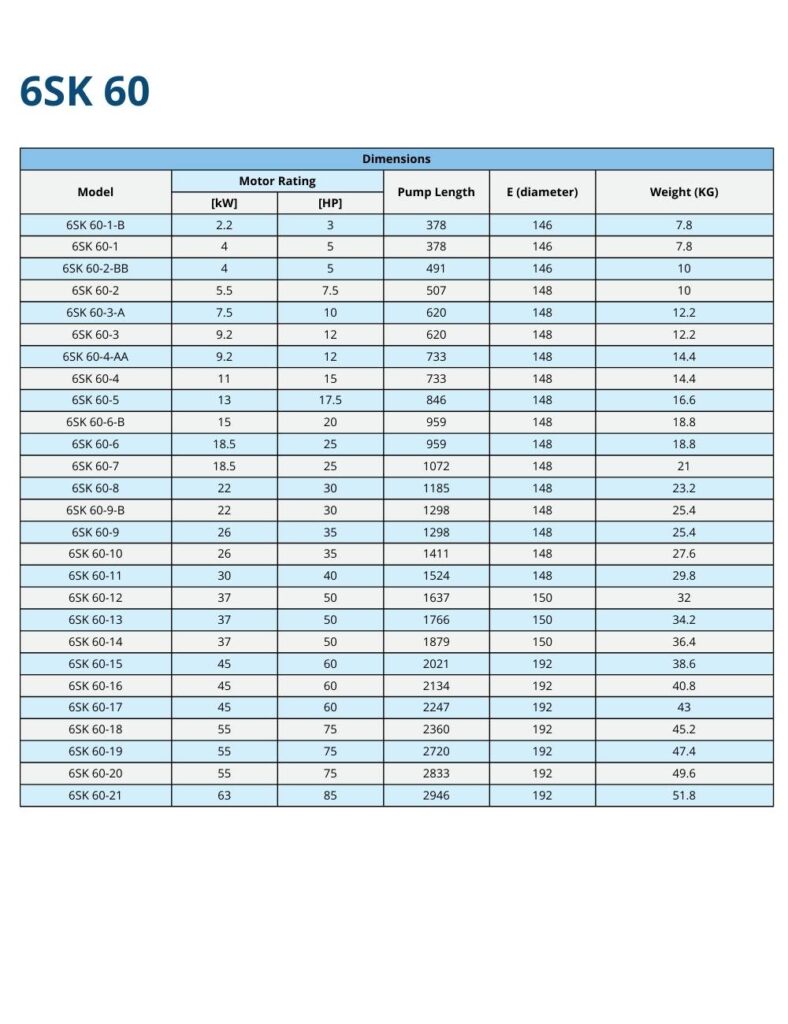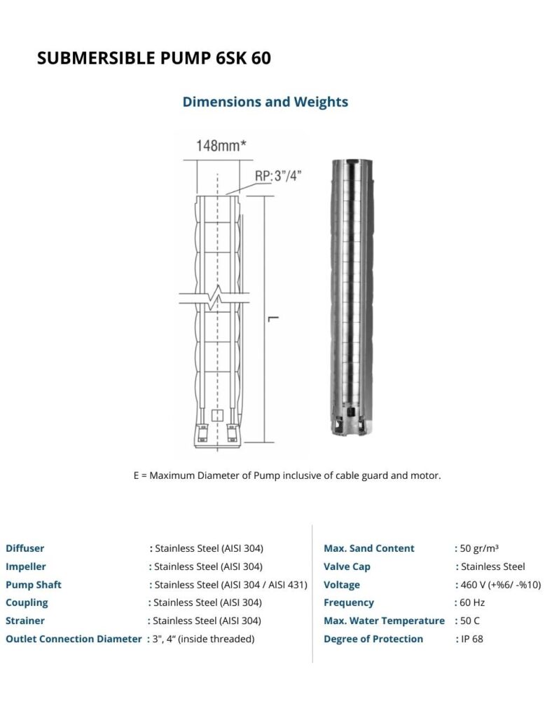 6SK60 Series Stainless Steel Submersible Pumps (60 Hz)