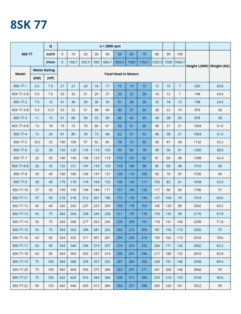 8SK 77 Series Stainless Steel Submersible Pumps (50 Hz)